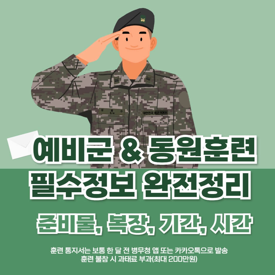 본 포스팅에서는 동원훈련 준비물, 복장, 훈련 기간, 시간 등 예비군 관련 최신정보를 표와 함께 한눈에 정리해드립니다.