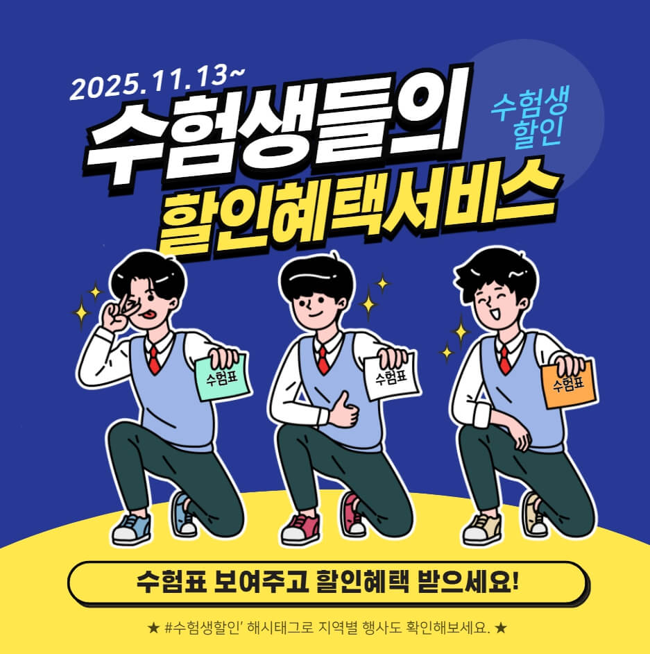 2025 수능 끝! 🎓 수험표 한 장으로 받을 수 있는 공식 할인 혜택을 한눈에 정리했어요.