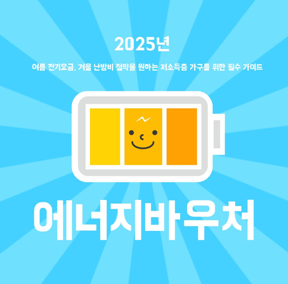 2025년 에너지바우처 최신 지원대상, 신청기간, 지원금액, 신청방법을 한눈에 정리했습니다. 여름 전기요금, 겨울 난방비 절약을 원하는 저소득층 가구를 위한 필수 가이드입니다.