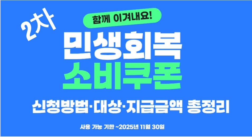 2025년 2차 민생회복 소비쿠폰 신청이 9월 22일부터 시작됩니다. 신청 방법, 지급 대상, 사용처, 유의사항을 한눈에 확인하세요. 빠르게 2차 소비쿠폰을 원하시면 아래 버튼에서 확인하세요.